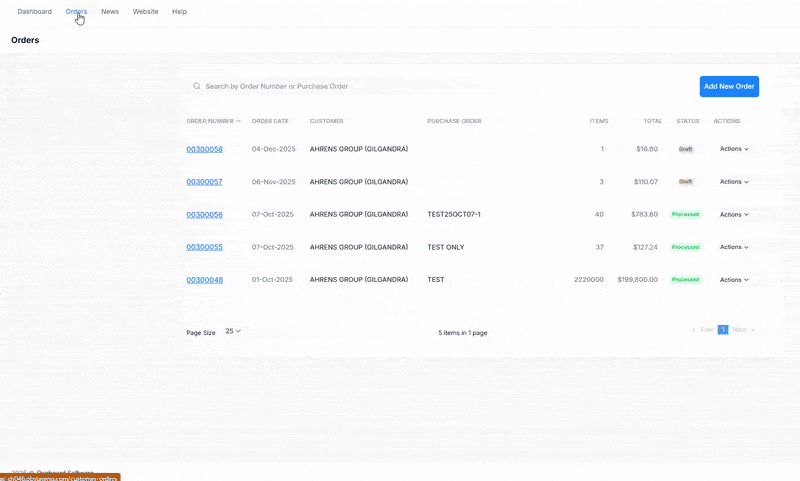 - Order Number: A unique reference number assigned to each order. The most recent order appears at the top of the list.