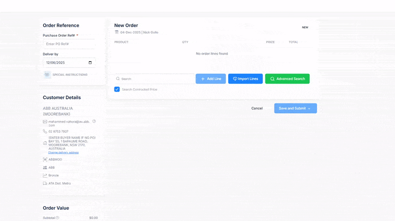 The Import Lines option is useful for bulk ordering or adding many products at once.
